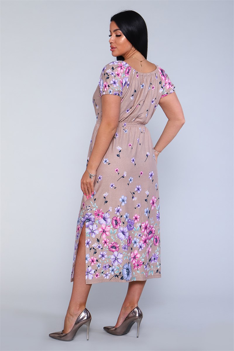 Женское летнее платье - сарафан свободного кроя с небольшими рукавами - регланами, собранными на резинке. Завышенная линия талии собрана на тонкую резинку в три ряда. Длина ниже средней. Горловина присобрана на тонкой резинке. По боковым швам внизу разрезы. Сшит из трикотажного полотна, 100%-го хлопка, что позволяет телу дышать и чувствовать себя комфортно в жаркий день. Удобный сарафан, приятный к телу, не стесняет движения. Подойдет на любую фигуру, скроет недостатки. Отлично смотрится на беременных. Приятные и стойкие цвета ткани. Широкий размерный ряд 46-62. Подходит для домашнего и повседневного ношения. Для дома и дачи, для отдыха и прогулок, в отпуск, на море. Отличный подарок любимым девушкам и женщинам!