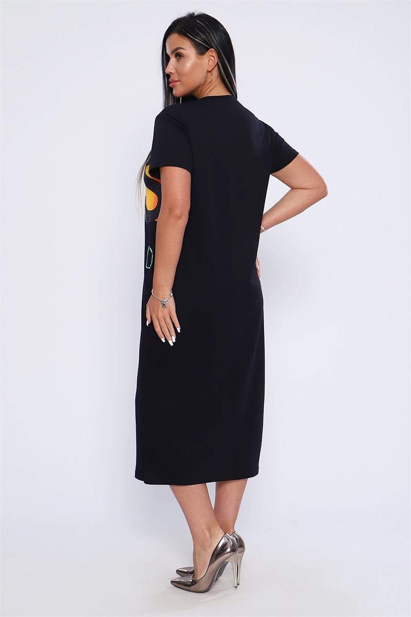 Летнее платье с коротким рукавом, с ярким принтом, с длиной ниже колена выполнено в стиле бочонок, что удачно позволяет подчеркнуть все изгибы женского тела и спрятать лишнее. Платье имеет два внутренних кармана, обтачка горловины из основной ткани, рукав в подгибку. В производстве использована ткань высшего качествакомпакт, плотностью 170грамм.