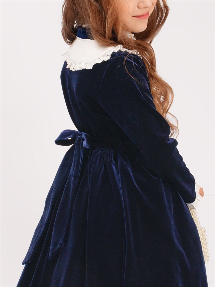 Очаровательное платье для девочки СольПерец из бархата, с отрезной кокеткой. Платье декорировано пуговицами из страз и жемчуга, белой кружевной окантовкой. Износоустойчивый материал позволит надолго сохранить форму и привлекательный внешний вид изделия. Идеальный выбор для создания стильного, школьного образа. Платье без подъюбника.