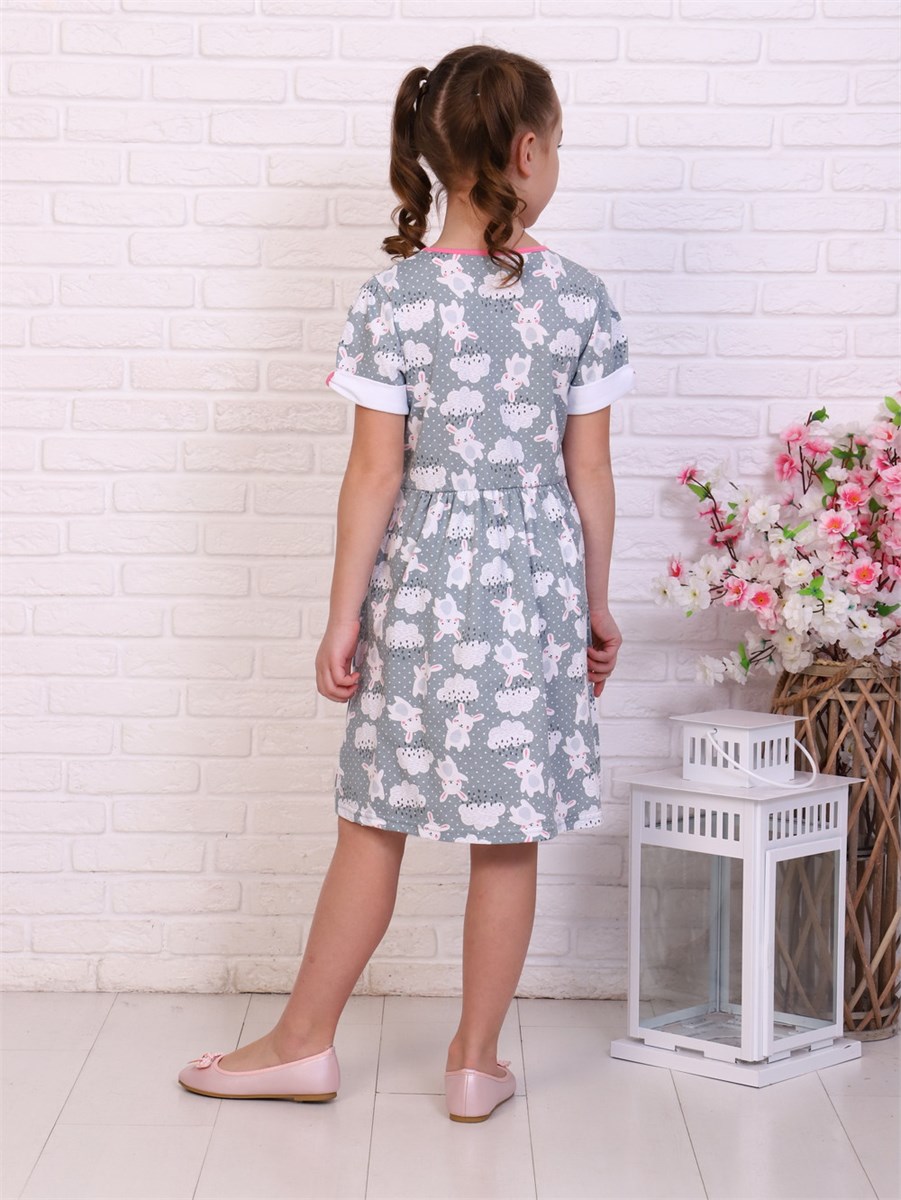 Повседневное платье для девочки с коротким рукавом. Модель прилегающего силуэта, из 100% хлопка. Спереди есть 2 кармана, что обязательно оценят юные модницы. БЕЗ застежки. Отлично подойдет для садика, для летних прогулок, а также для похода в гости или на праздник. Мягкий и приятный к телу материал. Для сохранения первоначальных свойств изделия, важно соблюдать рекомендации по уходу.