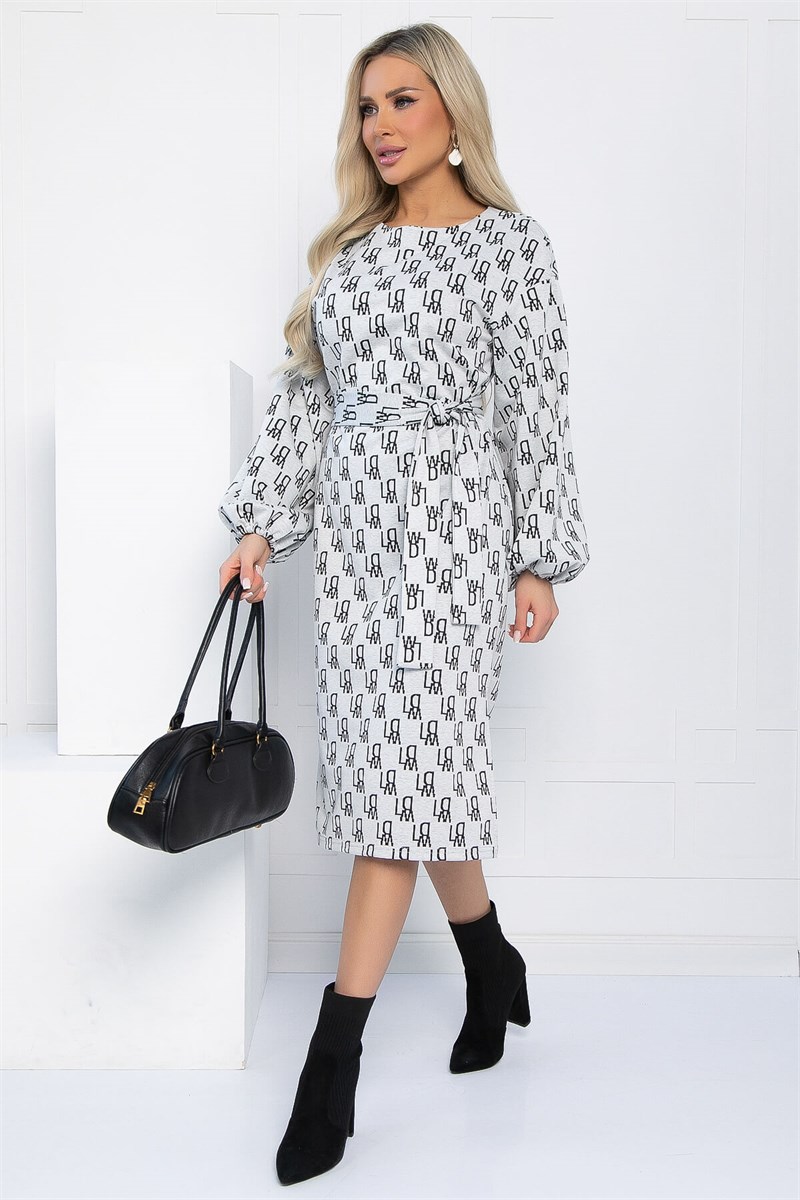 Артикул: П12763-18М. Тип ткани: смесовая. Состав: 65% полиэстер, 30% вискоза, 5% эластан. Материал: трикотаж. Цвет: светло-серый. Принт: буквы, символы. Длина: миди. Вид застежки: без застёжки. Силуэт: прямой. Карманы: отсутствуют. Подкладка: отсутствует. Декоративные элементы: рукав на резинке, расширенный к низу, пояс в комплекте. Длина по спинке от верхней точки плеча: 44-48/ 111 см, 50-52/ 112 см, 54-56/ 113 см. Размер изделия на модели: 44 Рост модели: 168 см. Платье средней длины — это отличный вариант для создания модного образа. Особенность этого платья — длинные рукава, которые расширяются книзу и собираются на резинку. Вы можете носить их в обычном положении или поднять вверх, чтобы создать более интересный силуэт. Пояс из основной ткани подчёркивает талию и завершает образ. Разрезы по бокам добавляют изюминку и лёгкость. Уход за изделием: ручная стирка до 30 градусов; нельзя отбеливать; отжим запрещён; гладить при t не более 110 С; гладить с изнанки. Внимание! Рекомендуем ориентироваться на размерную сетку и выбирать свой привычный размер, согласно размерной таблице. *Допуск отклонения длины при массовом производстве 1-3 см является нормой.