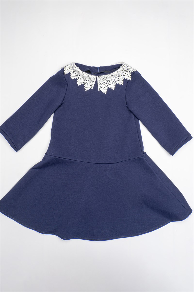 Классическое платье с кружевным воротником для девочки для особых случаев и для повседневного наряда. Стильное платье выполнено из трикотажного полотна двунитки, с кружевным воротником, с потайной молнией по спинке. Простое в уходе, легко стирается и утюжится.