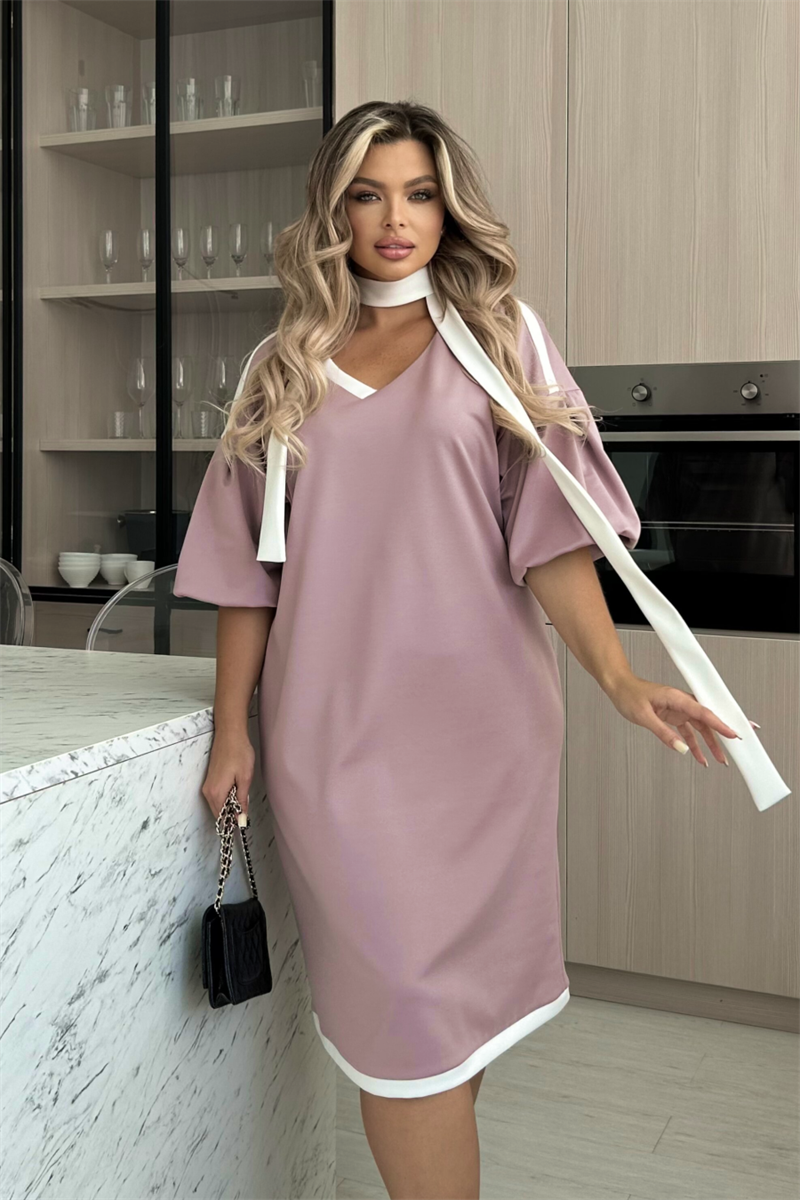 Женственное платье прямого силуэта. V - образная горловина на внутренней обтачке оформлена вставкой. Втачной рукав - фонарик со спущенным плечом. Низ ровный, оформлен притачной манжетой, сзади шлица. Пояс из основного материала входит в комплект. Пояс пришит, для того что бы в процессе примерки не потерялся, его можно отпороть. Рекомендуемая стирка при t не более 30°. Длина изделия: 104 см Длина рукава от горловины: 44 см Рост фотомодели: 168 см Размер фотомодели: 42 Ткань: Трикотаж