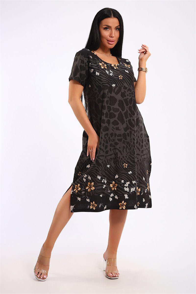Трикотажное летнее платье - идеальное решение для комфортного и стильного образа. Модель выполнена из мягкого и приятного к телу трикотажа, который отлично дышит,а свободный крой обеспечит ощущение свежести в любой обстановке. Платье отлично сидит на любой фигуре и скрывает недостатки. Его можно носить как в повседневной жизни, так и на отдыхе. А яркий принт ткани, представляющий собой микс леопардовой расцветки и цветочных мотивов сделает хозяйку нарядной и соблазнительной.