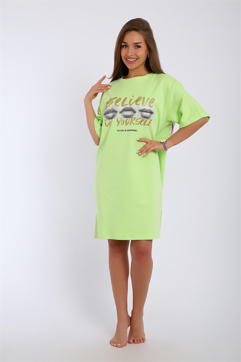 Легкое трикотажное платье-футболка формата Oversize, представлена в ярких летних расцветках, с забавным принтом на полочке. Платье идеально подойдет для любого летнего мероприятия, оно будет уместно как на пляже, так и на веселой вечеринке, прекрасно сочетается с шортами, велосипедками или лосинами. Трикотаж, из которого изготовлено платье, очень мягкий и нежный к коже и позволит хозяйке ощущать себя комфортно в любой ситуации!