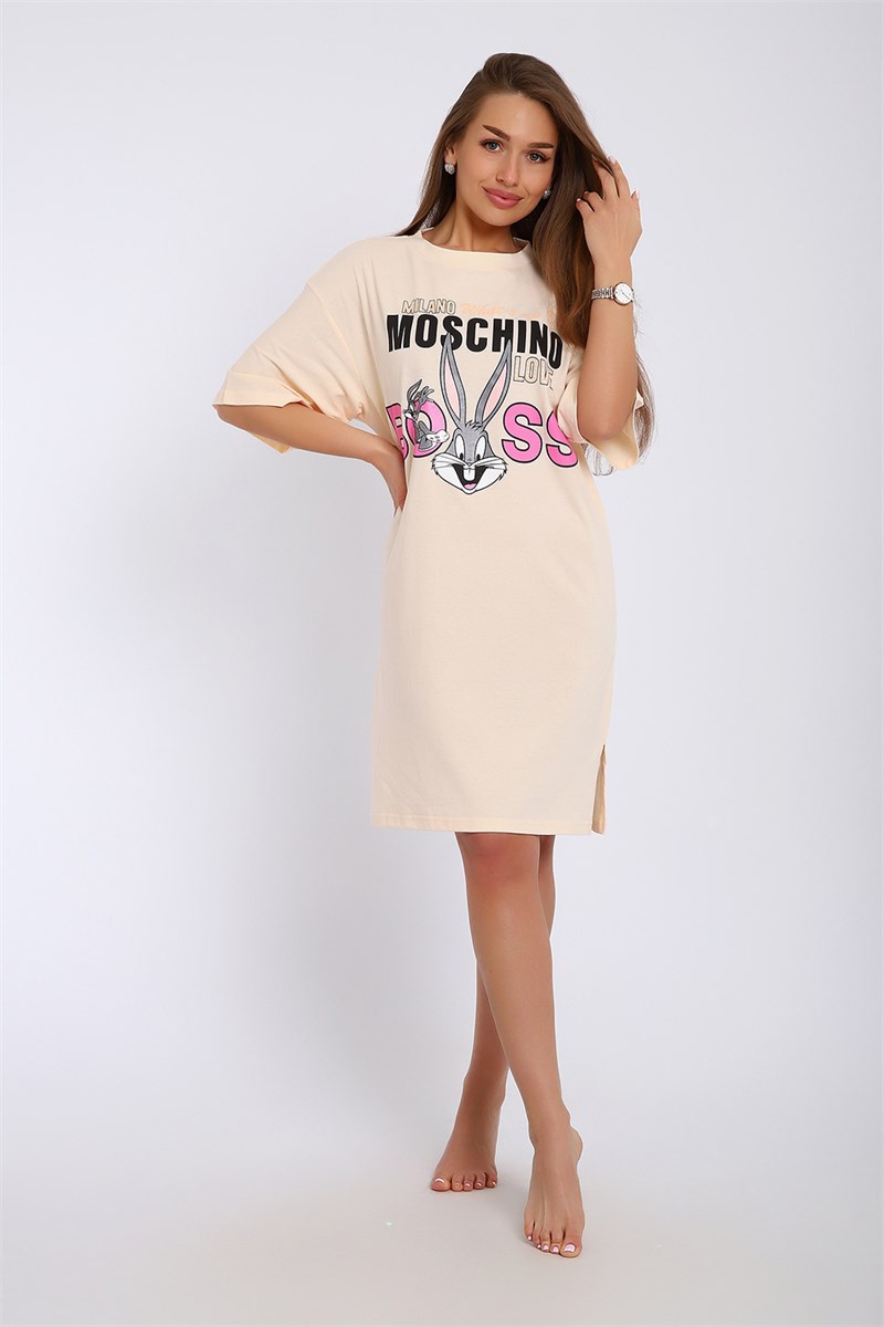 Легкое трикотажное платье-футболка формата Oversize, представлена в ярких летних расцветках, с забавным принтом на полочке. Платье идеально подойдет для любого летнего мероприятия, оно будет уместно как на пляже, так и на веселой вечеринке, прекрасно сочетается с шортами, велосипедками или лосинами. Трикотаж, из которого изготовлено платье, очень мягкий и нежный к коже и позволит хозяйке ощущать себя комфортно в любой ситуации!