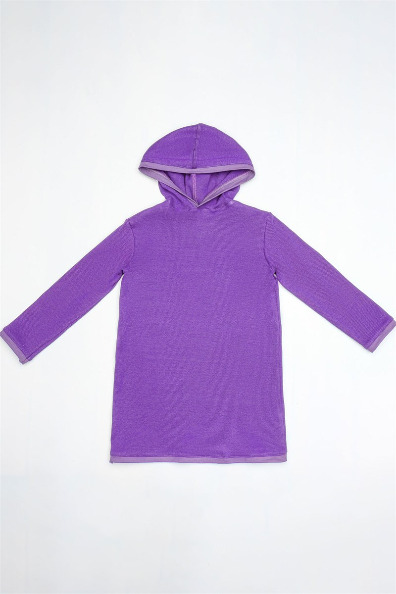 Повседневное платье-туника для девочки. Стильное платье выполнено из кашкорсе, с капюшоном. Простое в уходе, легко стирается и утюжится. По мере роста ребёнка может носиться как туника с брюками.