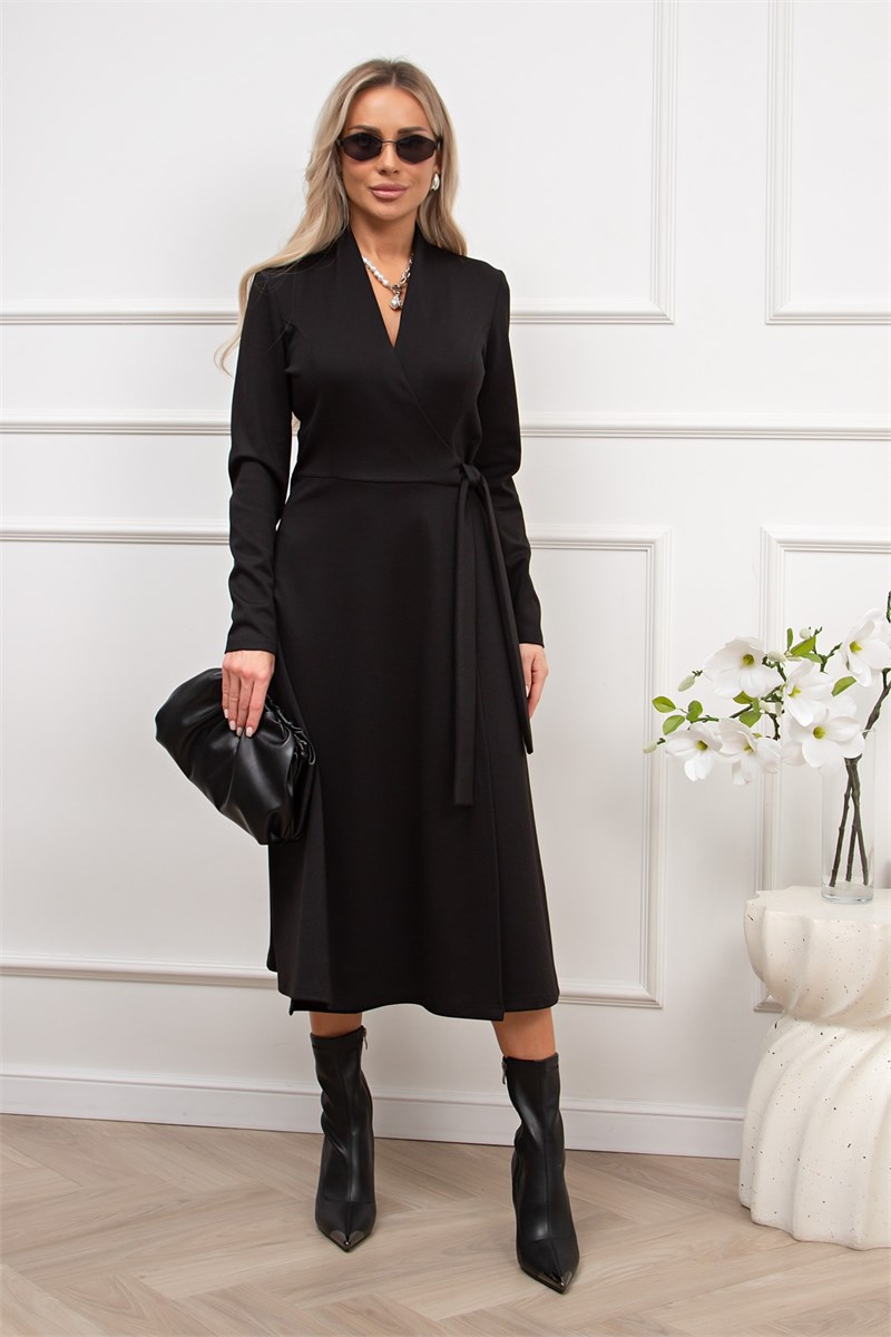 Женственное платье приталенного силуэта изготовлено из трикотажного полотна.V-образная горловина с цельнокроеной стойкой. Длинный втачной рукав. Модель отрезная по линии талии на запахе, сбоку пояс-завязка. Низ ровный, без разрезов. Рекомендуемая стирка при t не более 30°. Длина изделия: 115 см. Длина рукава: 60 см. Ткань: трикотаж Рост фотомодели: 168 см Размер фотомодели: 42