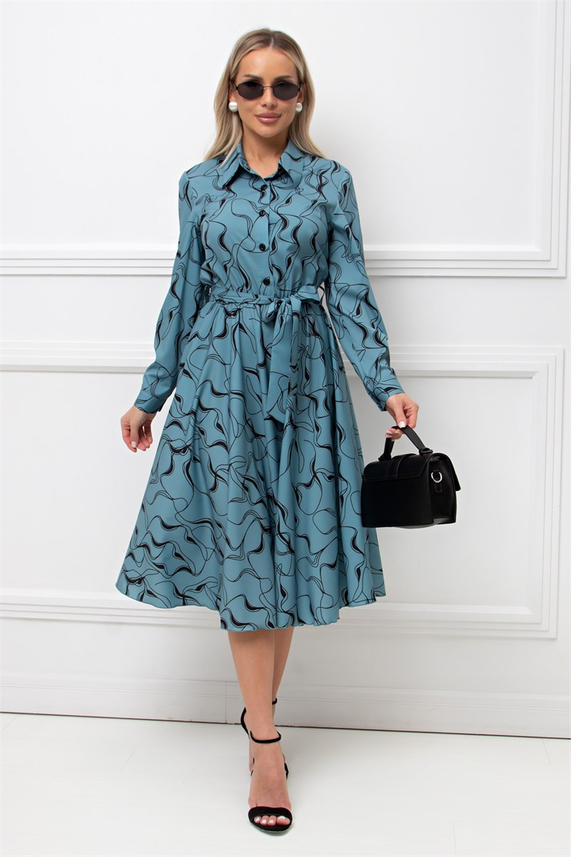 Красивое платье приталенного силуэта из легкой ткани - ниагара. Горловина оформлена отложным воротником на стойке. По переду выполнена планка с застежкой на петли и пуговицы. Длинный втачной рукав, оканчивается притачной манжетой. В боковых швах функциональные карманы. Модель отрезная по линии талии, присобрана на эластичную резинку. Тканевый пояс дополнительно акцентирует талию. Модель прекрасно дополнит ваш гардероб. Пояс пришит для того, чтобы в процессе примерки не потерялся. Он легко отпарывается. Рекомендуемая стирка при t не более 30°. Длина изделия: 42, 44, 46, 48 ,50 - 114 см Длина рукава: 60 см Рост фотомодели: 168 см Размер фотомодели: 42