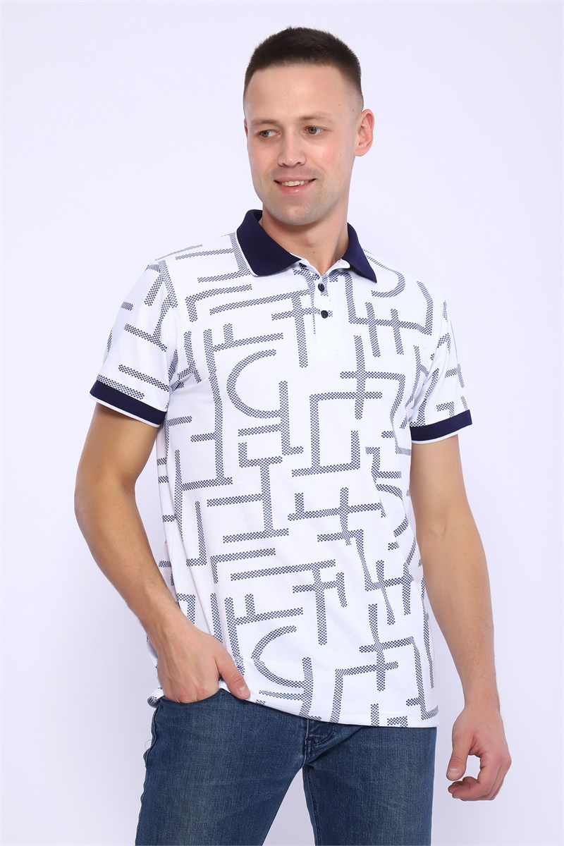 Футболка-поло мужская выполнена из ткани пике хорошего качества 100% хлопок. Поло оригинальной расцветки, с контрастными вязаными манжетами и воротником, плпнка на пуговицах, по бокам разрезы. Футболка очень комфортная, удобная, не садится после стирки, идеально подойдет для дома и отдыха.