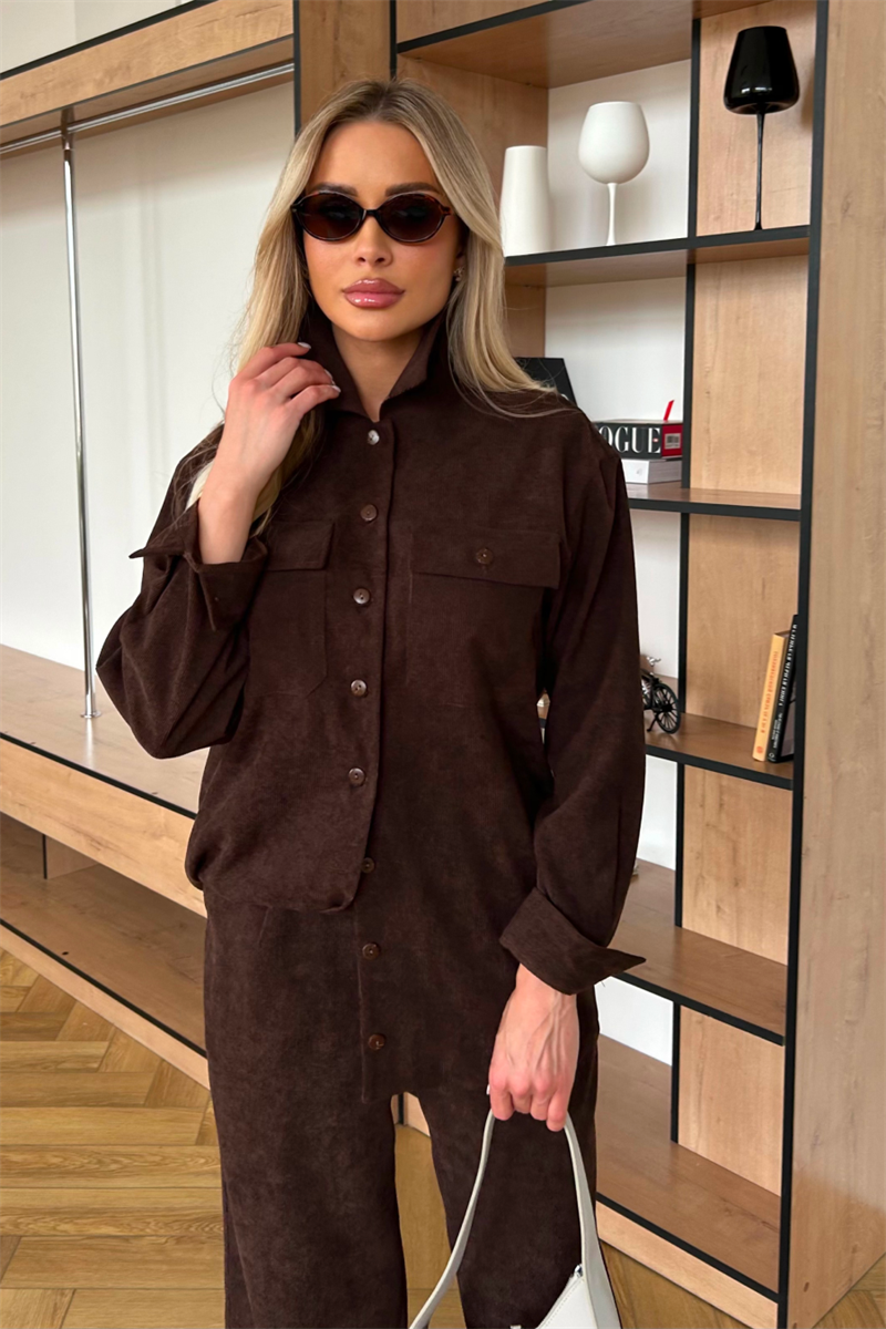 Стильная рубашка свободного кроя. Модель с накладными карманами на пуговицах. Горловина оформлена отложным воротником, переходящим в планку с застежкой на петли и пуговицы. Длинный втачной рукав со спущенным плечом, оканчивается притачной манжетой. Низ фигурный. Рубашку можно сочетать с джинсами, кожаными брюками, а так же создавать многослойные стильные образы. Рекомендуемая стирка при t не более 30°. Длина изделия: 73 см Длина рукава от горловины: 75 см Рост фотомодели: 168 см Размер фотомодели: 42 Ткань: Вельвет