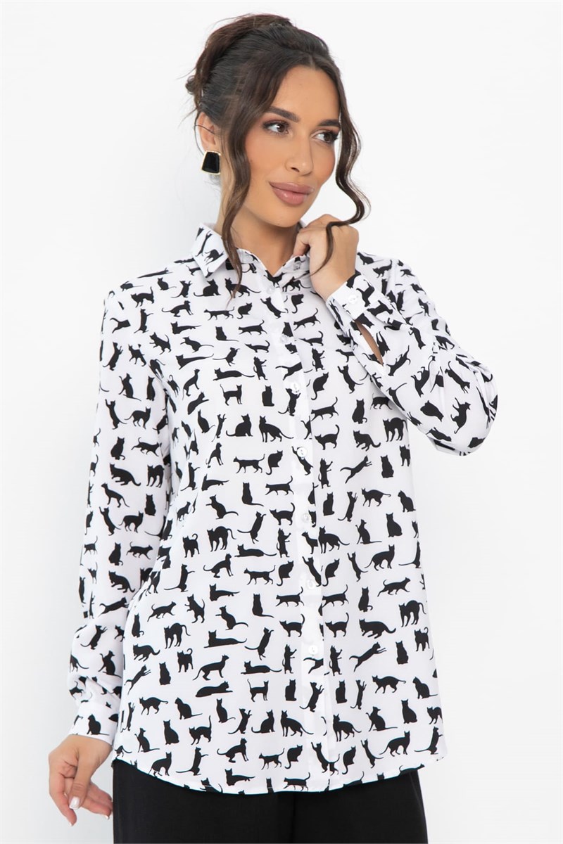 Добавьте в свой гардероб эту изящную рубашку, которая станет незаменимым элементом любого стиля! Её свободный крой не сковывает движений, обеспечивая максимальный комфорт. Рубашка застёгивается на пуговицы спереди, а её длинные рукава с манжетами аккуратно фиксируются пуговицей, создавая гармоничный и утончённый силуэт. Она идеально подходит как для офисных, так и для повседневных образов, придавая вашему стилю изысканность и шарм!
