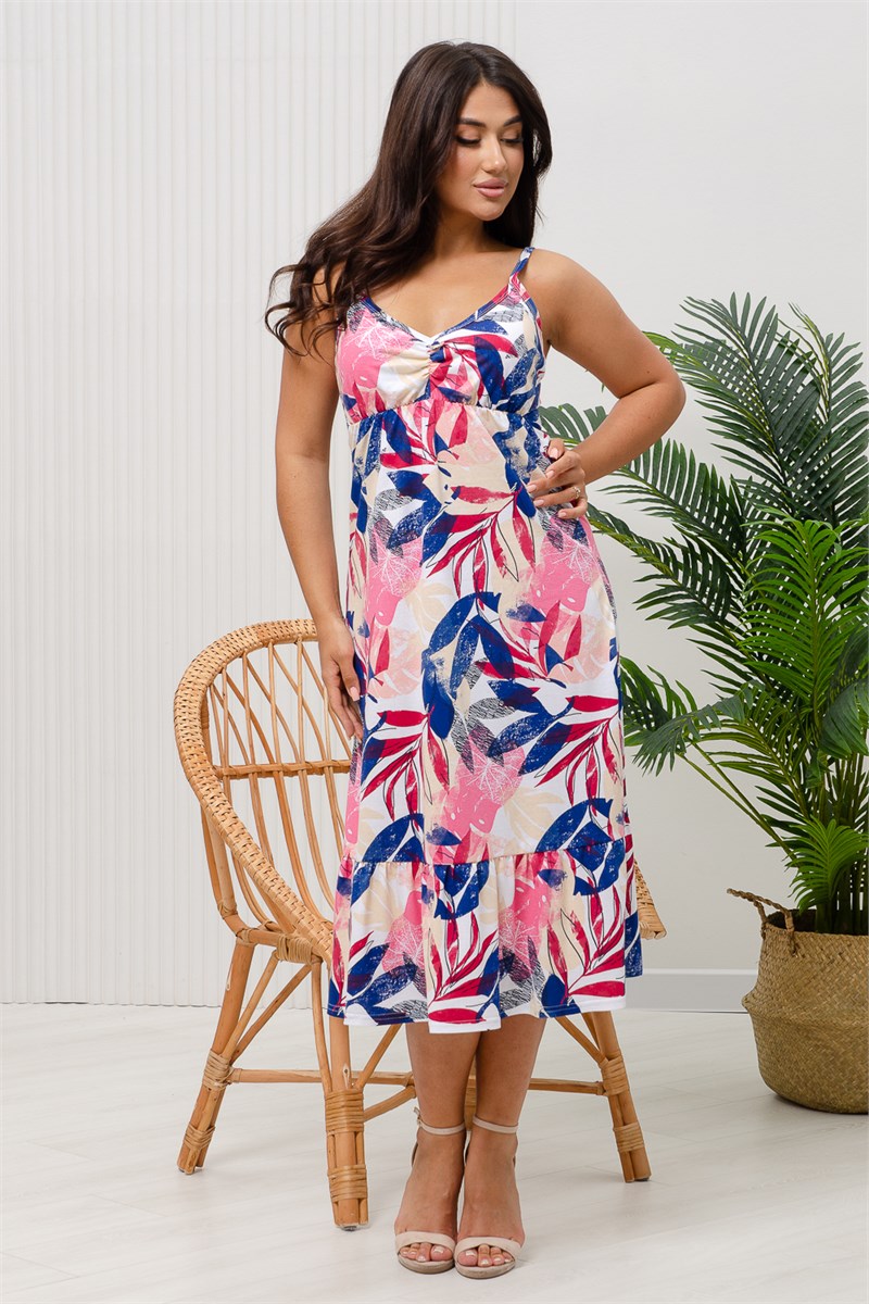 Лёгкий летний сарафан на бретельках полуприлегающего силуэта длиной до середины икры с пышным воланом по подолу. Изящный V-образный вырез лифа подчеркивает красоту груди. Данная модель выполнена из 100% хлопка. Даже в самые жаркие дни вы будете выглядеть в ней стильно и привлекательно.