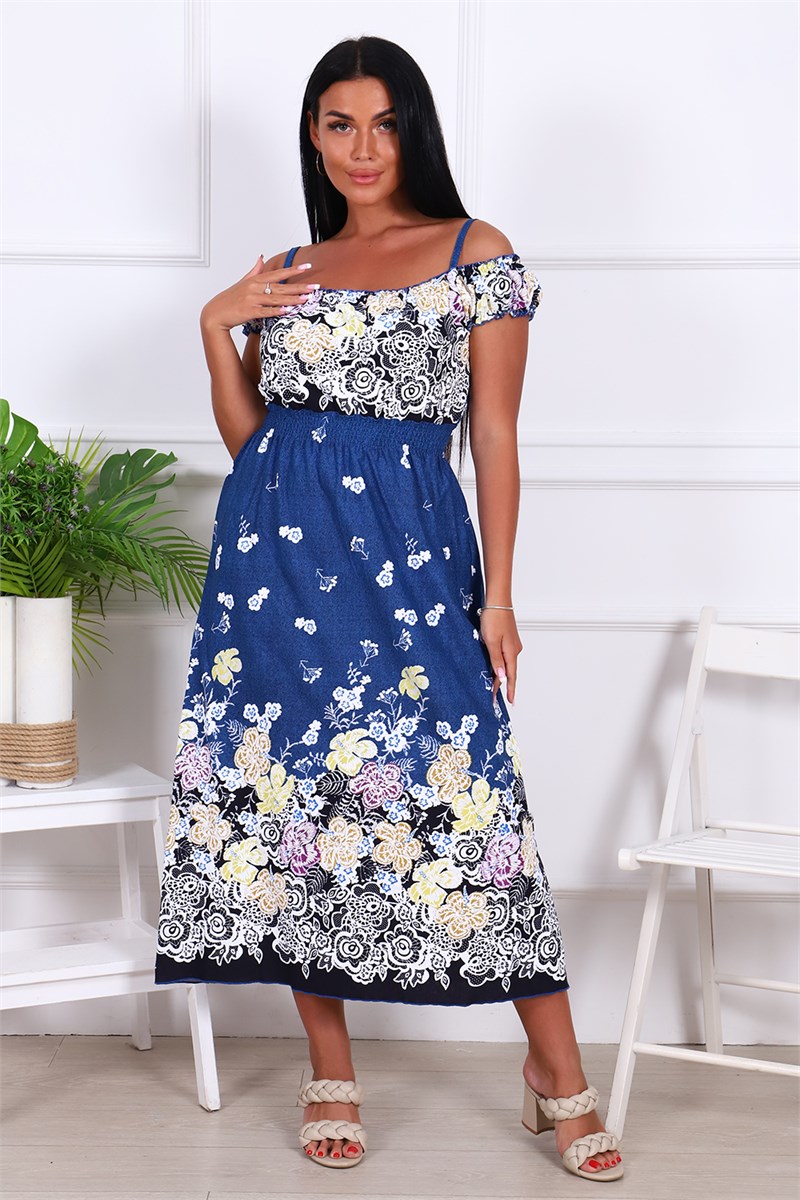 Сарафан женский на бретелях, с рукавом - оборкой. Выполнен из натуральной хлопковой ткани, Слегка расклёшенного силуэта собранный на резинку по линии талии. Длина Миди выгодно подчеркнет достоинства вашей фигуры.