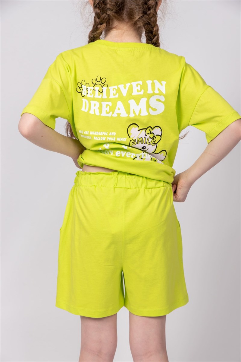 Модные и удобные трикотажные шортики - отличный выбор для девочек на летний сезон и для занятий спортом. В пояс вставлена эластична тесьма. На левой передней половинке шорт принт шелкография. Надпись переводится как Красота.