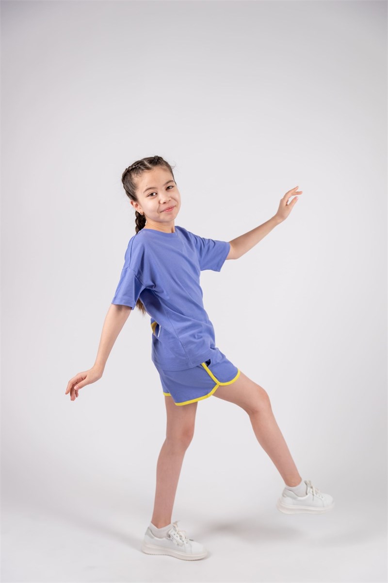 Модные и удобные трикотажные шорты- отличный выбор для девочек на летний сезон и для занятий спортом. По поясу шорт вставлен плоский утягивающий шнурок, что придает модели дополнительный яркий акцент. Шнурок, боковой шов и низ изделия обработаны бейкой контрастного цвета. Эти шортики для девочек идеально подходят для повседневных летних прогулок.