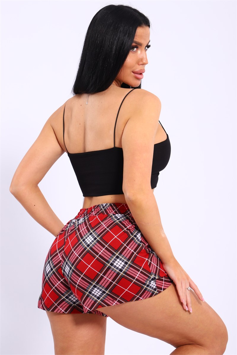 Женские красные шорты в клетку выполнены из плотной хлопчатобумажной ткани - интерлок. Размерный ряд 42-52.