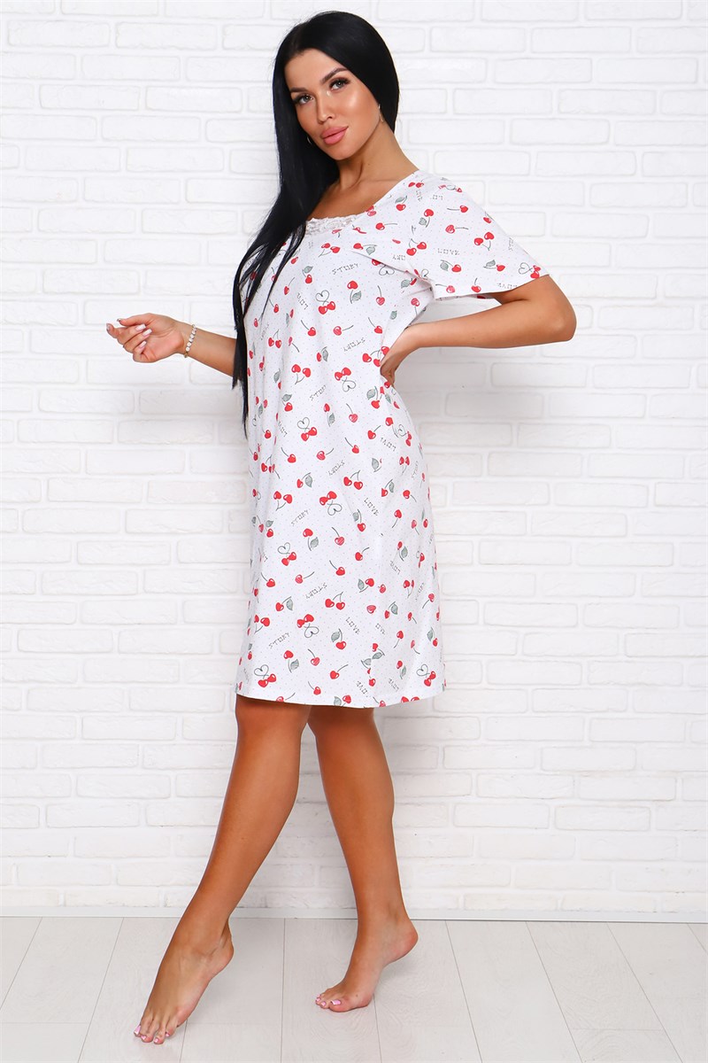 Сорочка ночная женская полуприлегающего и расширенного к низу силуэта, длиной ниже колена. Рукав - крылышко втачной до локтя. Перед с кокетками, украшен эластичным кружевом