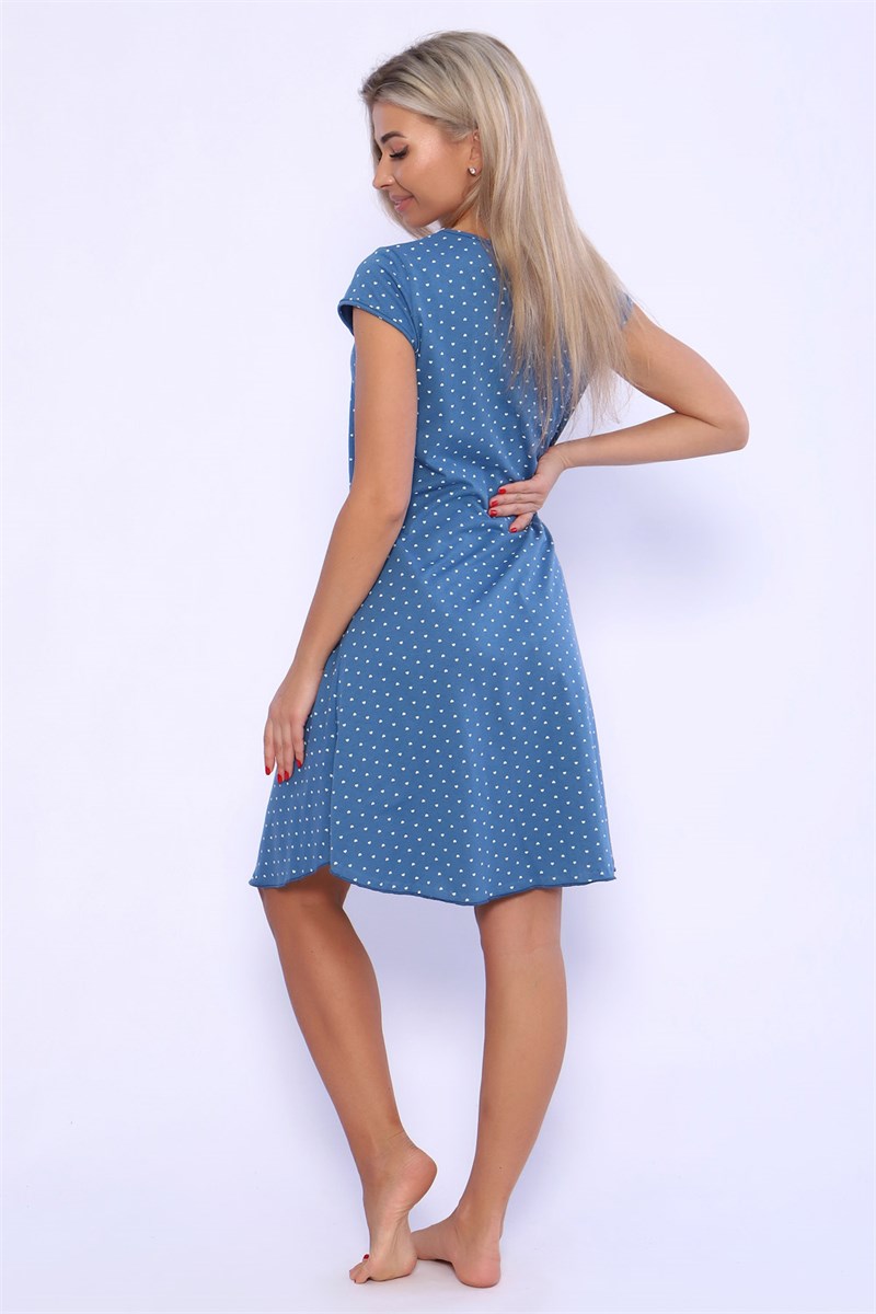 Сорочка из хлопковой трикотажной кулирки. Силуэт расклёшенный, горловина украшена шитьем из белых ромашек и двойным атласным бантиком, рукавчики - короткие.