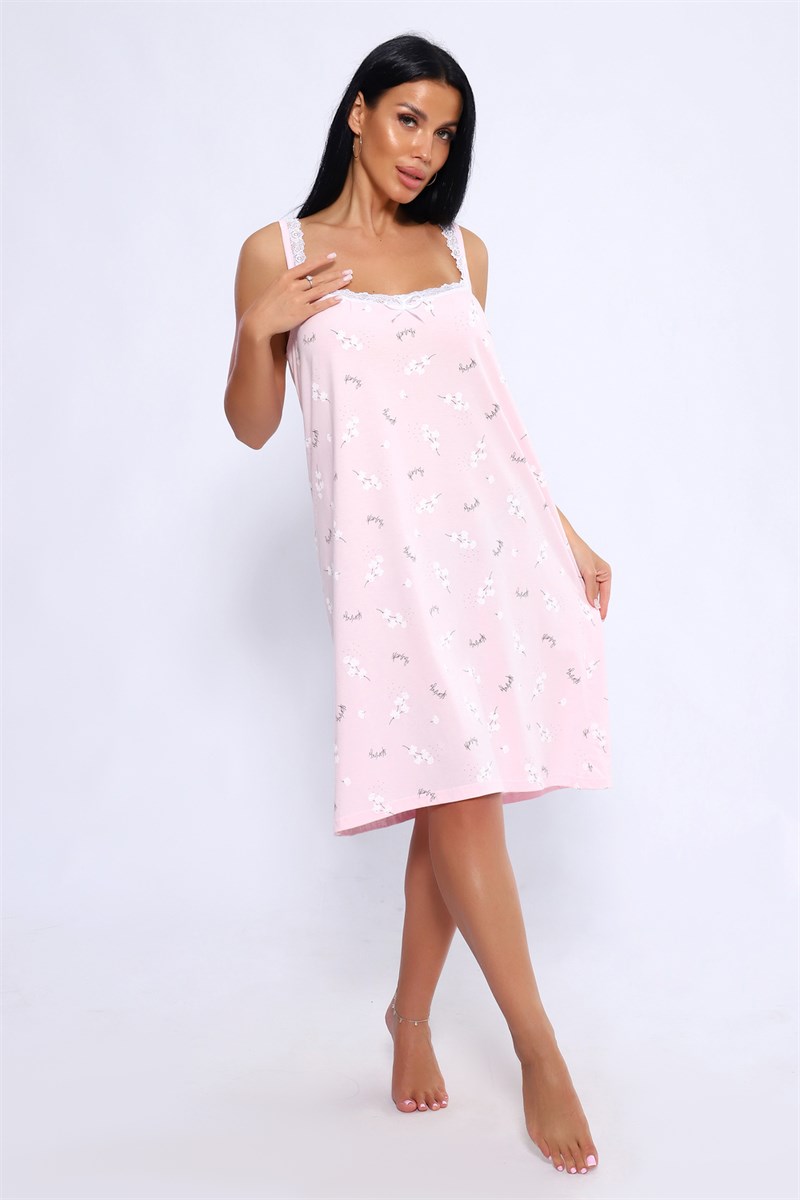 Сорочка женская из гипоаллергенного высокого качества пенье компакт трикотажа. Модель свободного кроя на узких бретелях, представлена в двух нежных расцветках. Сорочка комфортная, лёгкая, на груди и бретелях декорирована мягким, эластичным жаккардовым кружевом. Ночная сорочка из дышащего , приятного к телу трикотажа, создаст вам уют и хорошее настроение.