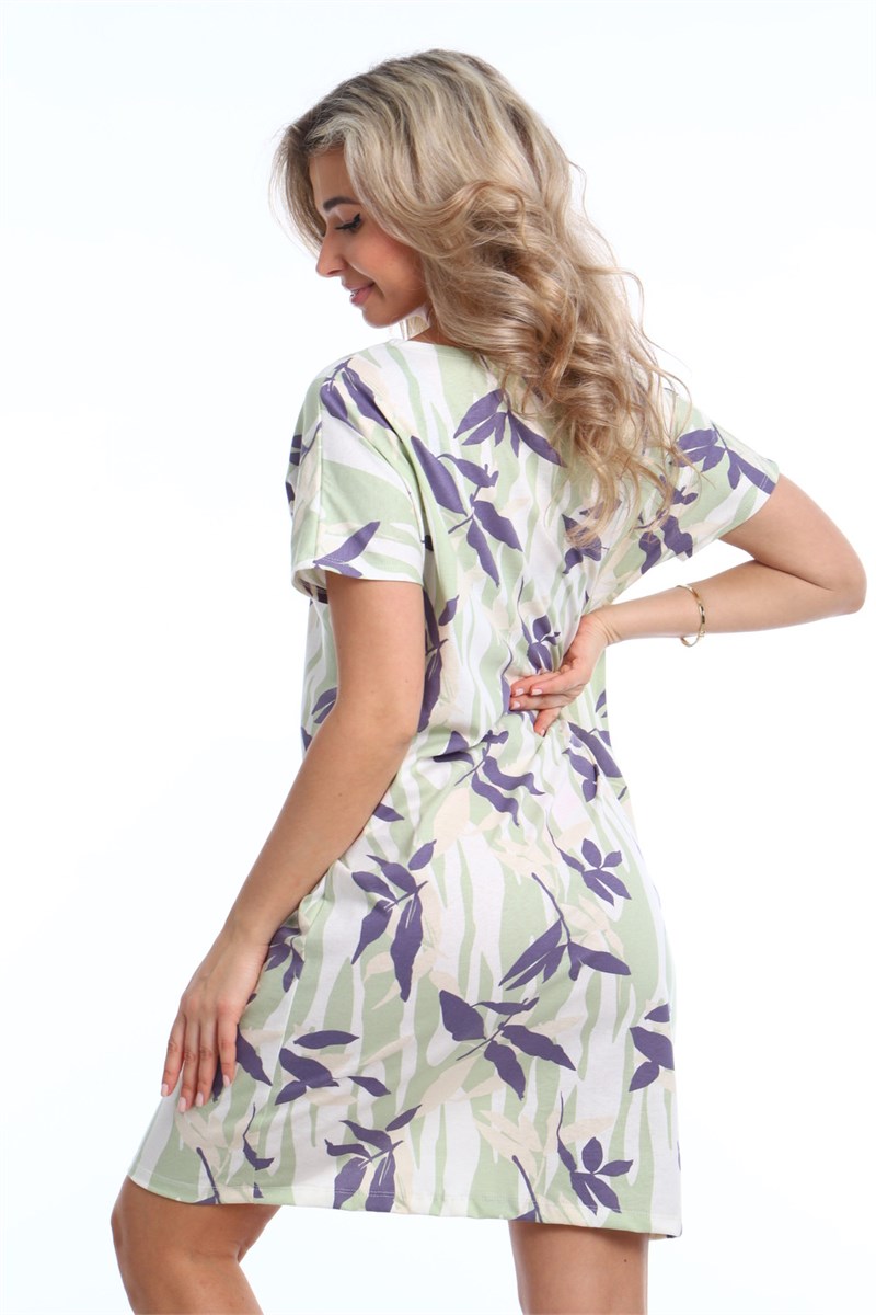 Предлагаем вам женскую сорочку из комфортного трикотажного полотна кулирка с элегантным набивным рисунком. Стильная модель с прямым силуэтом, короткими рукавами и овальной горловиной и прямой линией низа. Наслаждайтесь комфортом и изяществом в одежде!
