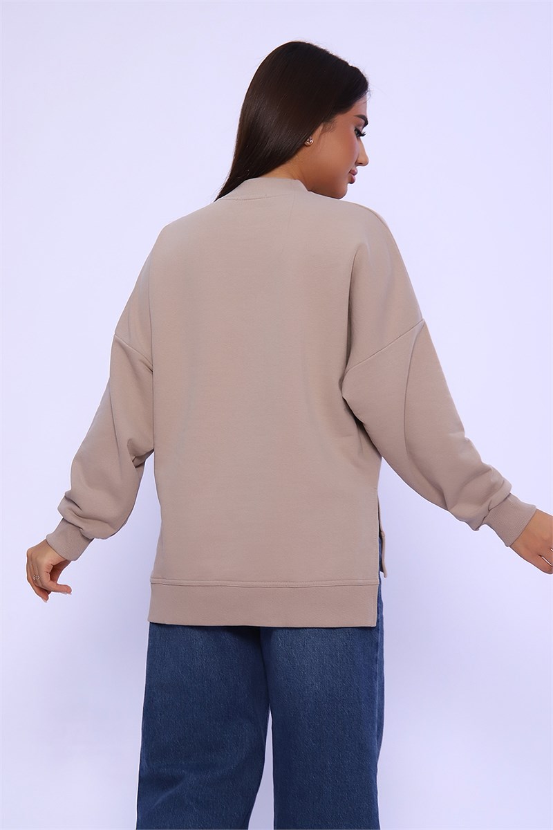 Свитшот женский выполнен в классических цветах. Особенность этой модели - спущенный рукав (летучая мышь), удлиненная спинка и боковые разрезы. Округлая горловина декорированная отстрочкой. Свитшот изготовлен из футера 3‑х нитки (петля). В 52 и 54 размеры, по спинке шов.