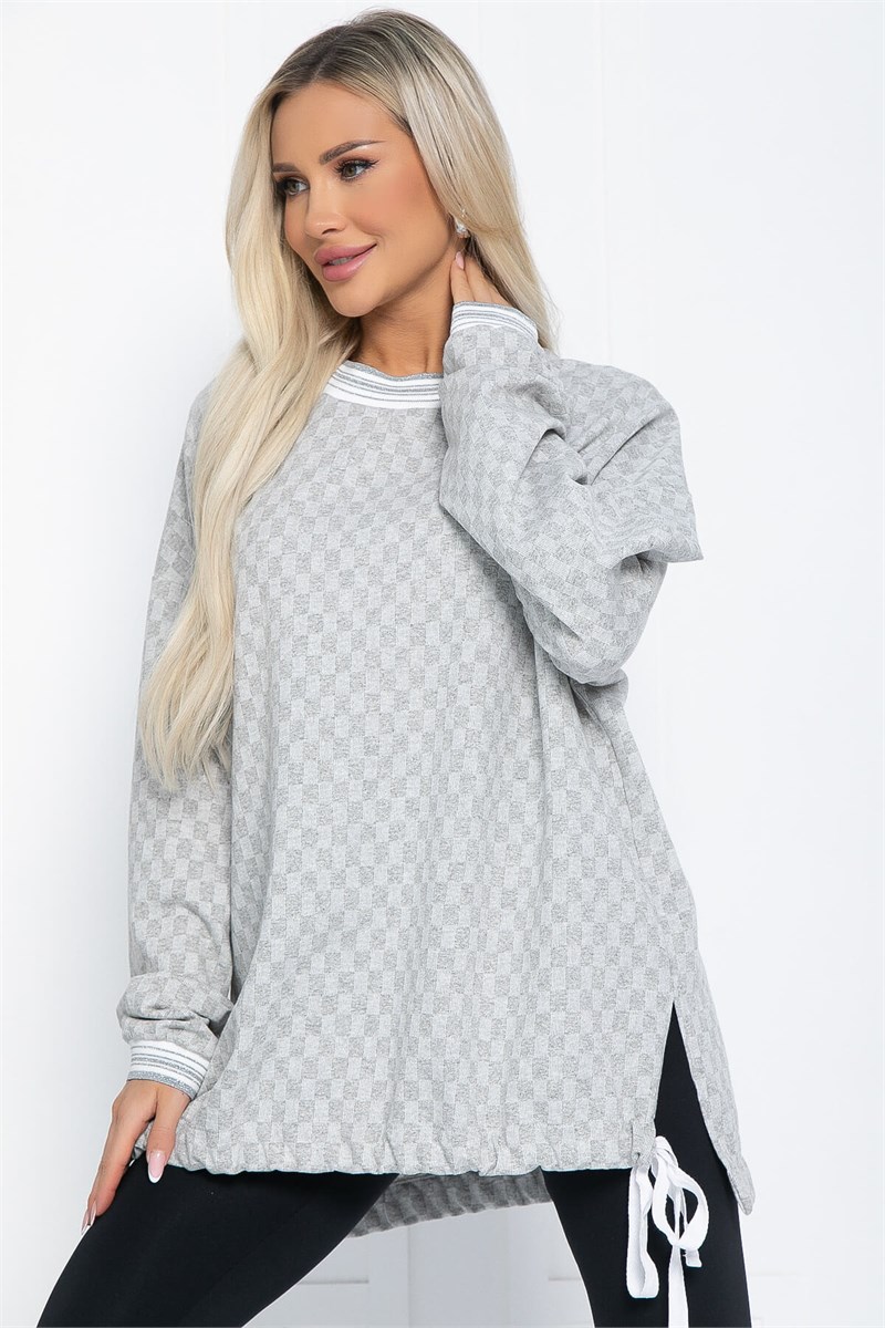 Свитшот свободного силуэта — идеальный выбор для создания стильного и комфортного образа. Декоративный подвяз на горловине и рукавах придаёт изделию уникальный и модный акцент, добавляя изюминку в повседневный стиль. Ассиметричная длина делает свитшот ещё более интересным, позволяя сочетать его с различными элементами гардероба, будь то джинсы или леггинсы. Мягкий и приятный на ощупь материал обеспечивает комфорт в носке, а свободный крой дарит свободу движений. Идеально подходит как для повседневной носки, так и для создания более кэжуальных образов.