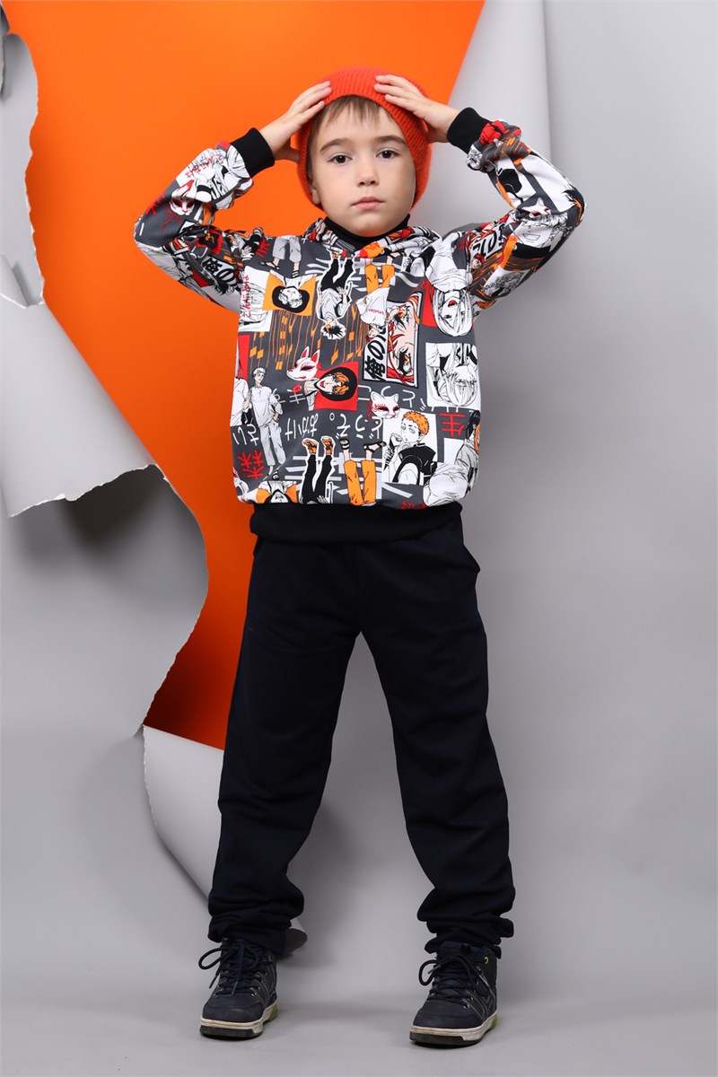 Толстовка детская с капюшоном. В данной модели на горловине присутствует воротник стойка выполненный из эластичного трикотажного плотна кашкорсе. Низ изделия и манжеты так же обработаны кашкорсе. Прекрасный вариант для детского активного отдыха.