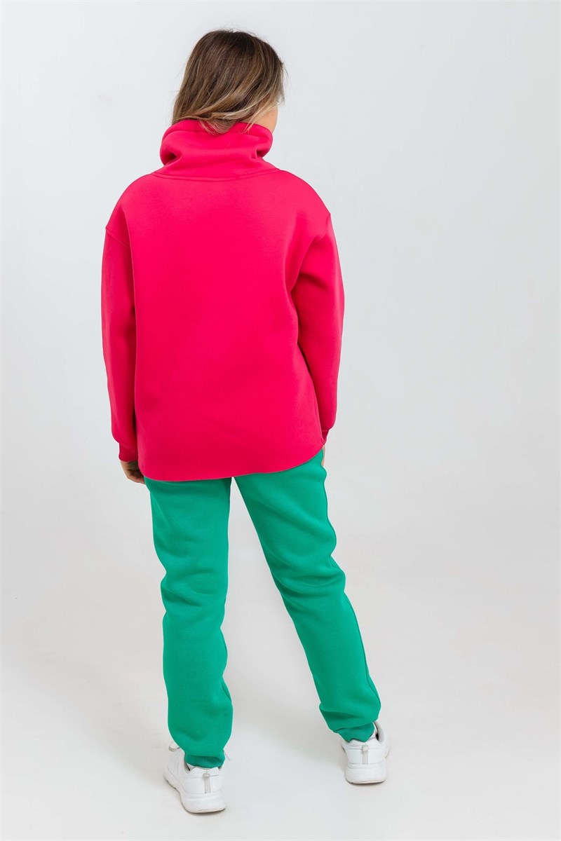Стильная теплая толстовка худи для девочки - это идеальная базовая одежда для активных парней. Такие классические вещи непременно должны быть в детском гардеробе для повседневного ношения. Ткань толстовки состоит на 70% из хлопка и на 30% из полиэстера, позволяет коже ребенка дышать и защищает от переохлаждения при минусовой температуре. В отличие от аналогичных зип - толстовок на молнии, эта кофта без застежки легко надевается через голову. К тому же зипка больше подходит к спортивному стилю, а эта толстовка универсальна. Свитшот без капюшона свободного кроя и достаточно высоким горлом не сковывает движений во время носки, подойдет на весну, лето, осень и зиму до - 10 градусов. В теплый весенний, летний и осенний сезон мягкую трикотажную толстовку с широким рукавом и мягкими манжетами на резинке можно надевать как самостоятельный элемент гардероба, а в зимний - как дополнительный слой для утепления под любую одежду. Плотная oversize толстовка дополнит любой необычный молодежный образ и спортивный костюм. Ее можно носить в комплекте со спортивными штанами, брюками, джинсами. Яркая кофта из трикотажа сочетающая в себе два цвета зелёного яблока и фуксии с декоративным эксклюзивным принтом в виде зелёных надписей подойдет девочкам подросткам и молодым девушкам. Широкий размерный ряд позволяет выбрать подходящий размер в зависимости от типа фигуры (от 134 до 164). Для создания образа из тик - ток рекомендуем выбирать большие размеры, чтобы удачно сочетать свитшот с бермудами и шузами. Удобную длинную кофточку с высоким воротником и необработанным низом можно использовать как уличную, домашнюю, школьную, спортивную, футбольную, тренировочная, туристическую одежду. Она подойдет для похода в школу и на урок физкультуры, прогулки, тренировоки, похода в горы, футбола, поездки, бега, туризма, катания на велосипеде, коньках, роликах, скейте, спортзала, путешествия в качестве сменной одежды. Ткань премиум качества не меняет форму после стирки, не дает усадку, не покрывается катышками. Страна производства - Россия, бренд - Modestreet. Классную толстовку с рисунком - текстом можно подарить детям на любой праздник: день рождения, 8 марта, новый год. Такой подарочный вариант можно выбрать для дочки, племянницы, внучки, сестры, крестница или приобрести своему ребенку даже без повода. Желаем приятных покупок с брендом Modestreet!