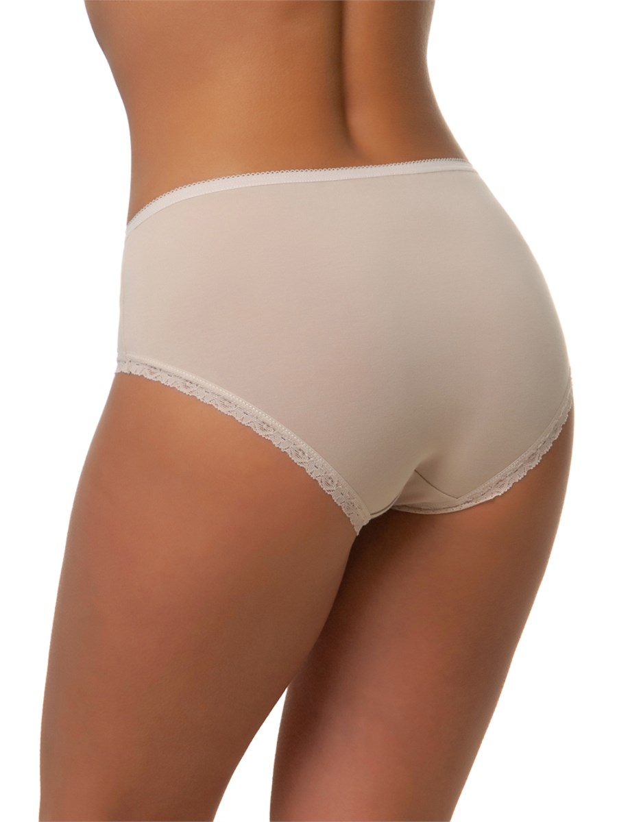 Однотонные трусики для женщин нежных пастельных цветов с кружевной резинкой по ножкам и ажурной резинкой по поясу.