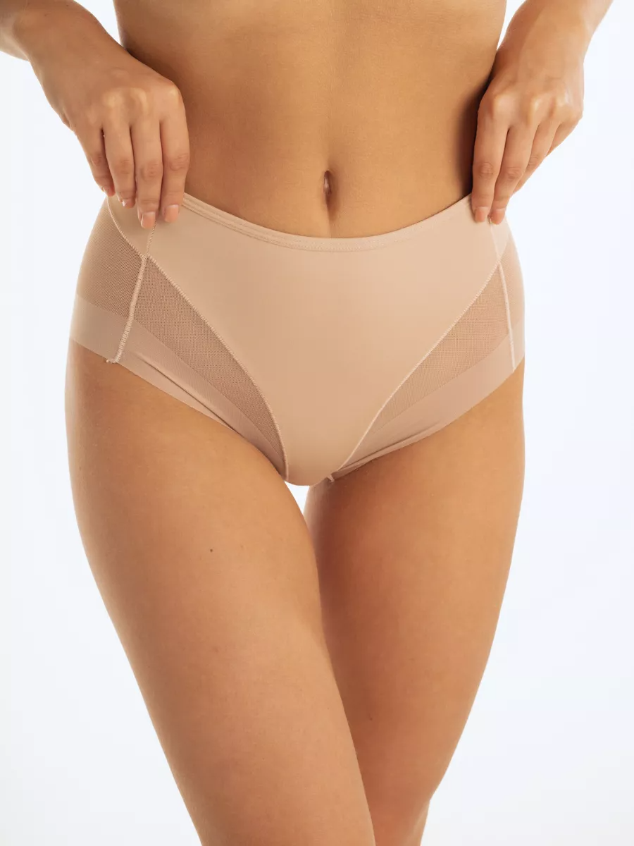 Женские трусы с лёгкой коррекцией. За счёт высокой посадки они сглаживают живот, но при этом не врезаются в кожу. Модель можно носить под любую одежду, в том числе облегающую. Корректирующее бельё является отличным выбором для тех, кто хочет скрыть некоторые недостатки фигуры и создать идеальный силуэт. Они отлично подходят для важных событий, таких как свадьба или других особых случаев, когда вам нужно выглядеть на 100%.