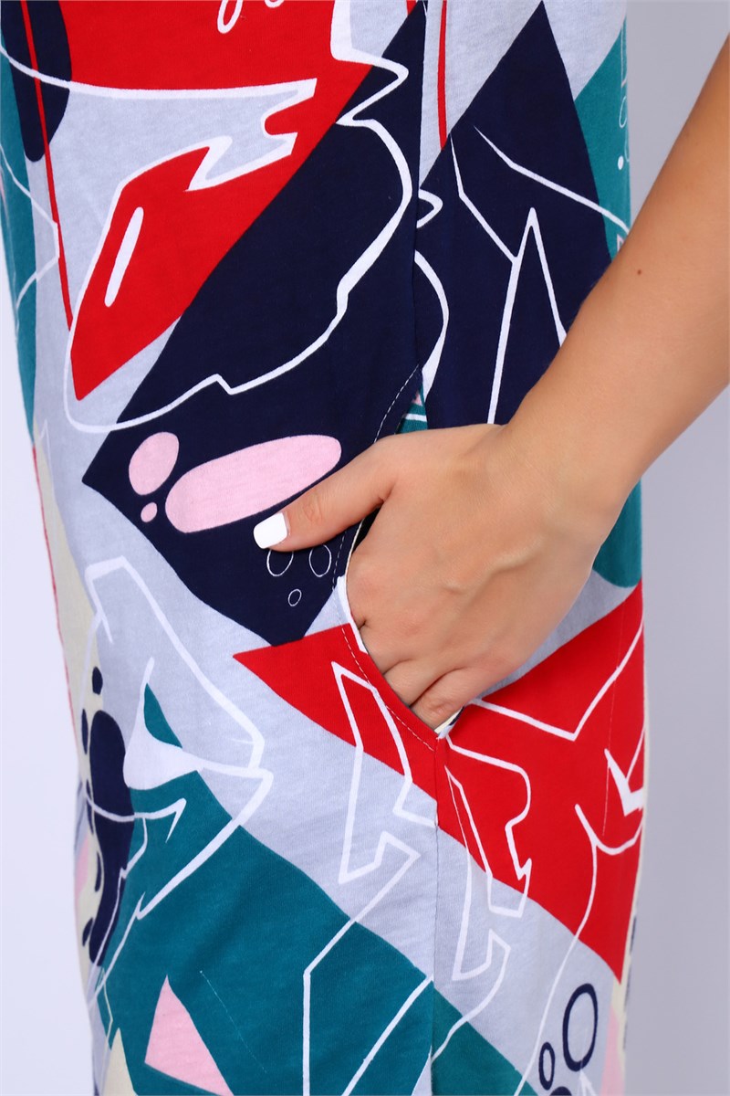 Туника свободного кроя с манжетами на спущенном плече. В боковых швах карманы и небольшие разрезы.