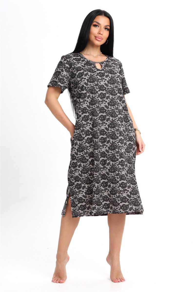 Туника женская прямого силуэта с карманами, горловина обработана кантом с фигурной капелькой на груди. Сбоку разрезы.