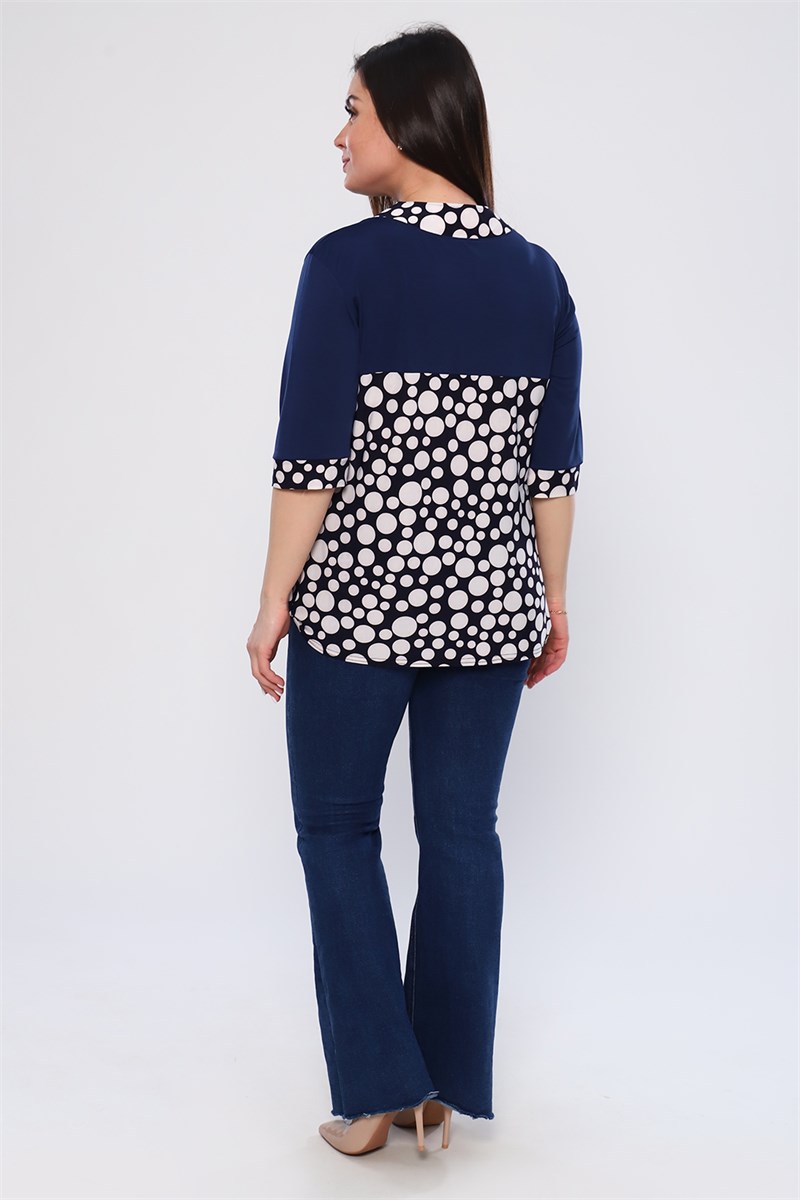 Туника прямого покроя подобрана на паты, рукав 3/4 на манжете. Передняя полочка на кокетке, комбинированная в двух цветах, спинка цветная. Удобна, практична.