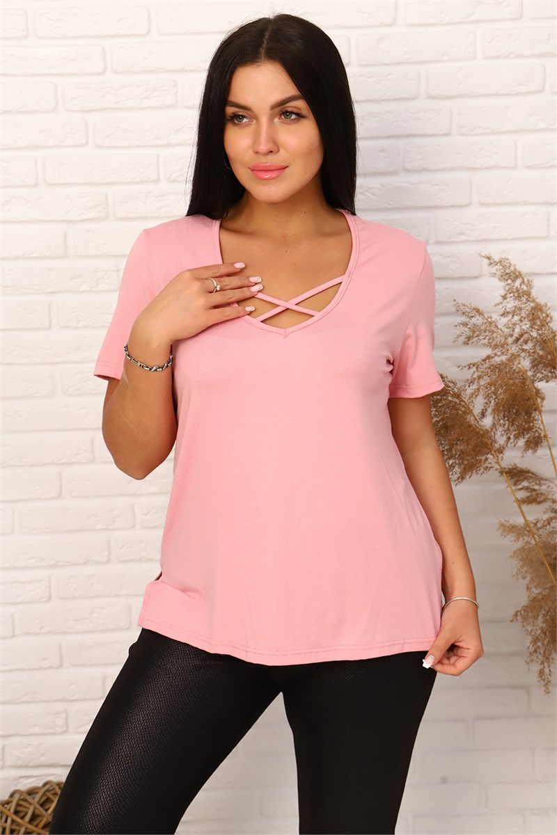 Туника женская из эластичного трикотажного полотна - вискозы. Туника полуприлегающего силуэта с коротким рукавом, по боковым швам разрезы. Изюминка - фигурный вырез горловины.
