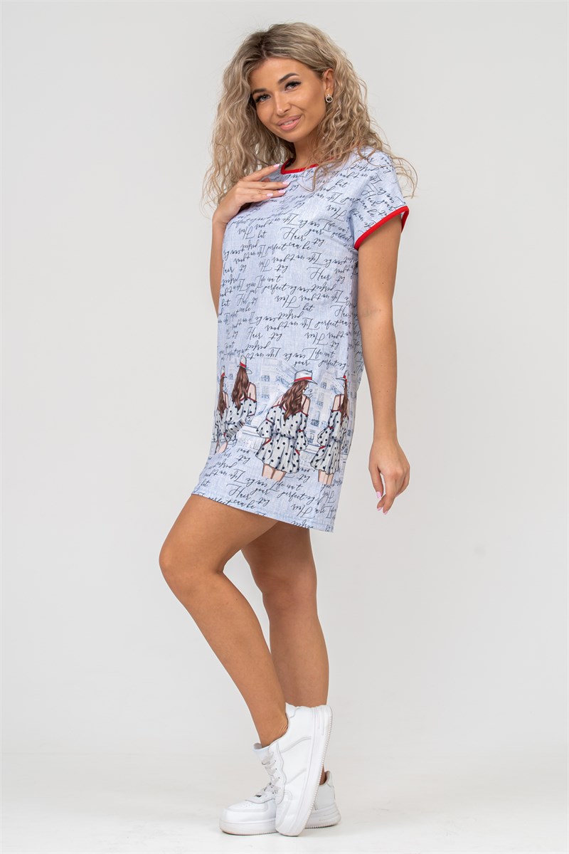 Женская туника прямого силуэта со спущенным плечом выполнена из 100% хлопчатобумажной ткани. Горловина и рукава обработаны ярким красным кантом, а крупный купонный рисунок по краю ткани придаёт изделию по-своему оригинальный вид. Данная модель идеально подойдёт для дома и отдыха.