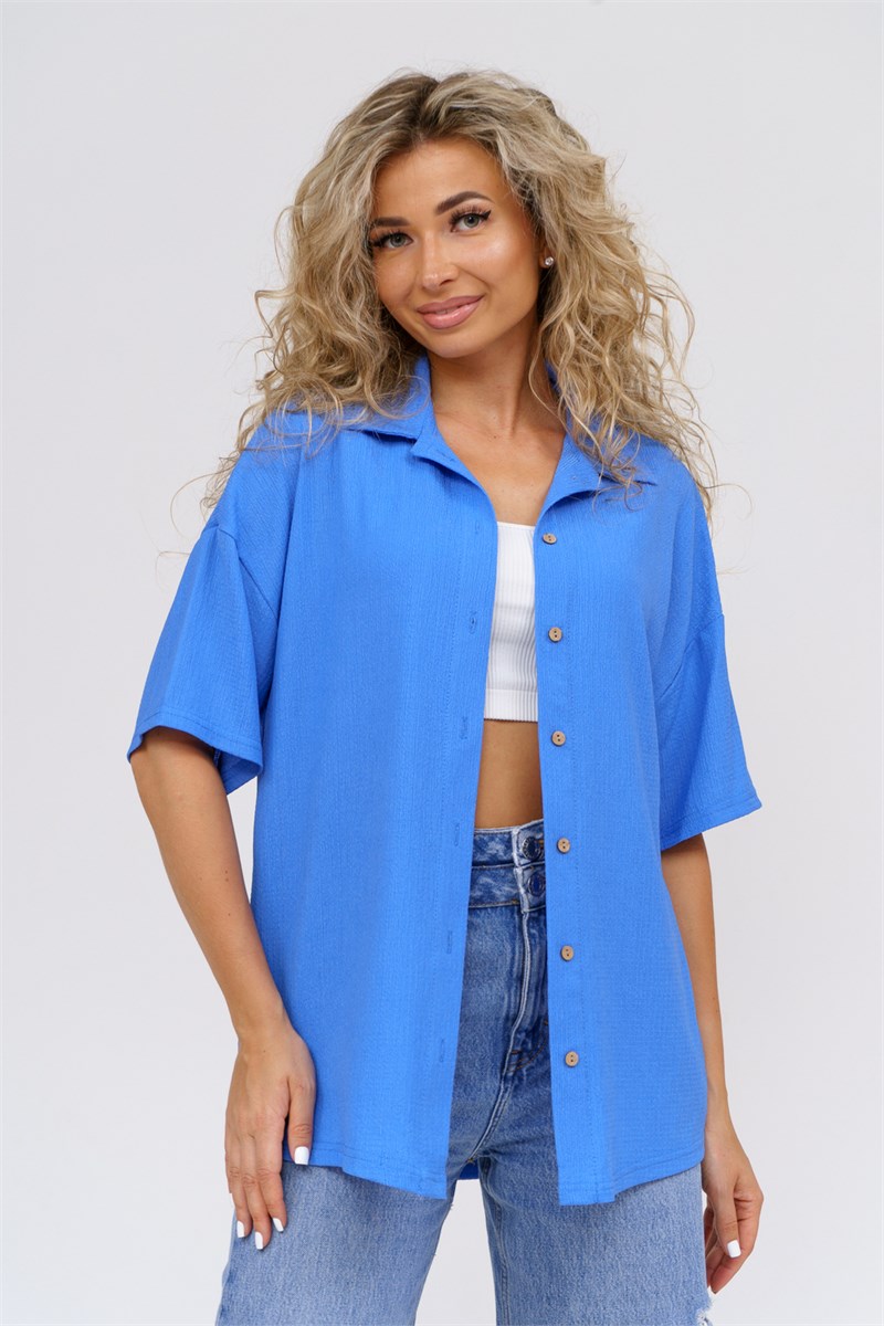 Модная рубашка в стиле oversize выполнена из лёгкого и приятного к телу материала - жатка. Это одна из самых модных и популярных моделей сезона. Рубашка имеет слегка удлинённую спинку, спущенную линию плечевого шва, короткий рукав, классический рубашечный воротник и планку. А модные цвета этого лета добавляют законченность деталям и определяют must have сезона. За счёт свободного фасона рубашку можно носить с любым типом фигуры, отлично подойдёт для беременных женщин, а также кормящих мам. Женская рубашка идеальна как для лета, так и для прохладного вечера. С помощью такой рубашки Вы можете создать деловой образ или летний расслабленный. А также отправиться на праздник или вечеринку, в школу или на прогулку, на пляж или провести незабываемый вечер дома. Модель такого плана идеально подойдёт и в качестве подарка для себя и своих любимых! У нас Вы также можете приобрести шорты - модель 36742 и брюки - модель 36743 в едином стиле с рубашкой и создать свой неповторимый образ!