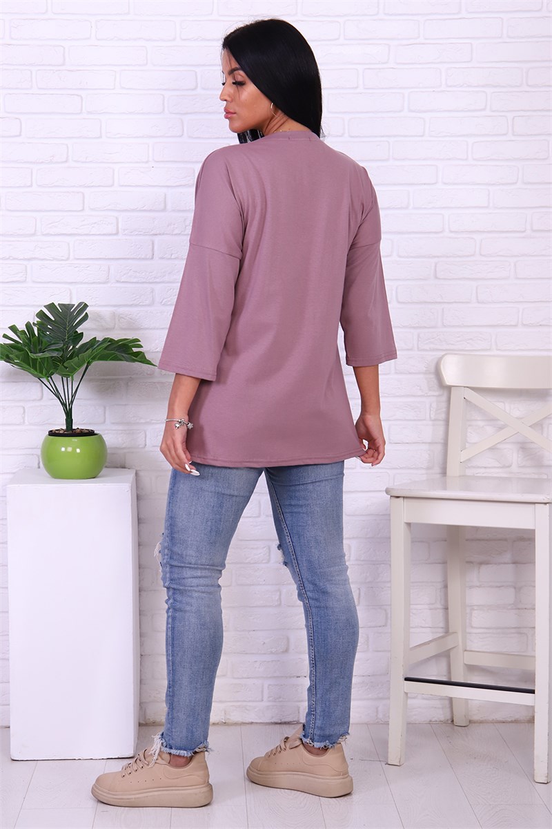 Туника выполнена из мягкого хлопка с нежным принтом одуванчиков, присыпанным глиттером. Модель свободного кроя, рукав 3/4, горловина втачная, низ и рукава вподгибку.