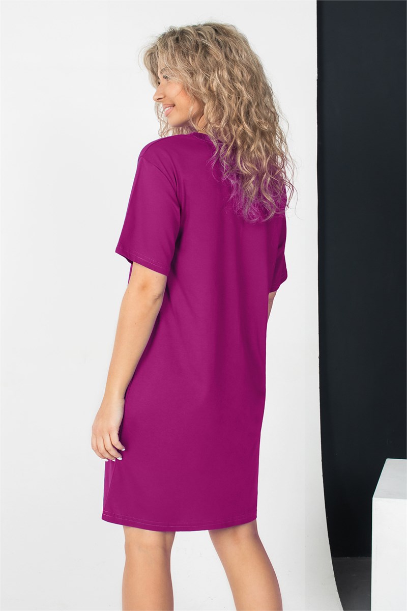 Туника женская длиной до колена, прямого силуэта, свободной формы. Рукав втачной, длиной до локтя. Посередине переда выполнен дизайнерский принт.
