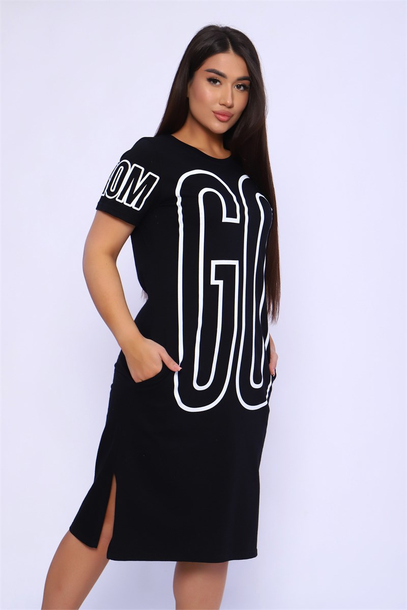 Туника выполнена из однотонной ткани 100% хлопок. На полочке и рукавах есть принт, два кармана в боковых швах. Туника свободного силуэта, не сковывает движений. Эта туника подойдет для женщин любого возраста на отдыхе и прогулке.