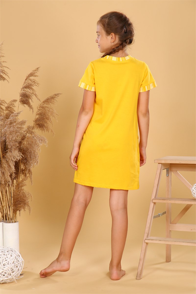 Туника детская из кулирки, с печатью, горловина с отделкой, рукав с манжетом