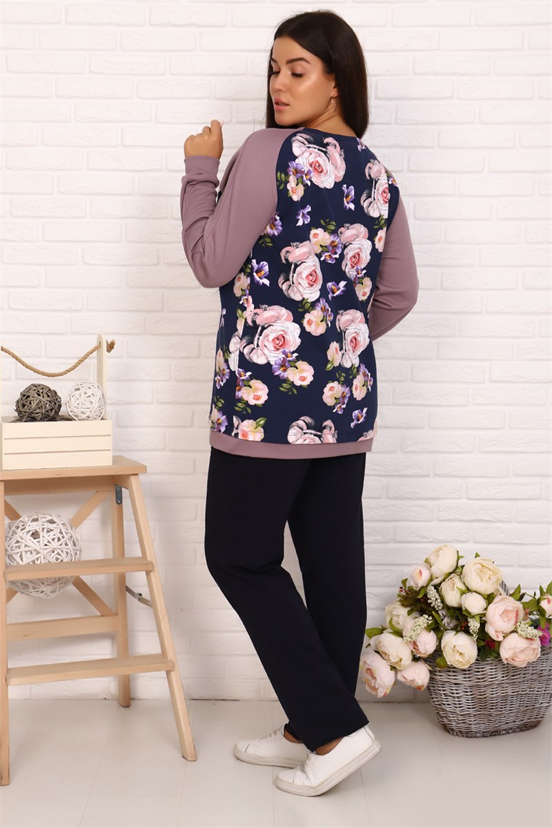 Туника женская, полочка и спинка из набивного футера двух нитки. Рукав реглан однотонный из интерлока качества пенье. Для дома и отдыха.