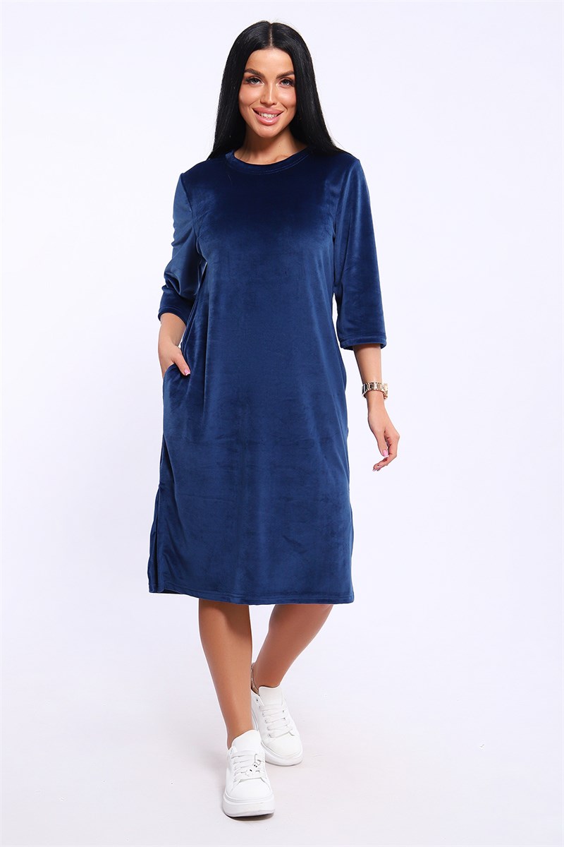 Туника женская мягкая велюровая, полуприлегающего силуэта. Вырез горловины округлой формы, обработан обтачкой из основной ткани. Туника с карманами и разрезами в боковых швах, длина чуть ниже колена. Рукав втачной, длина чуть ниже локтя. Для более облегающего силуэта вы можете взять данную модель на размер меньше. Туника имеет большой размерный ряд.