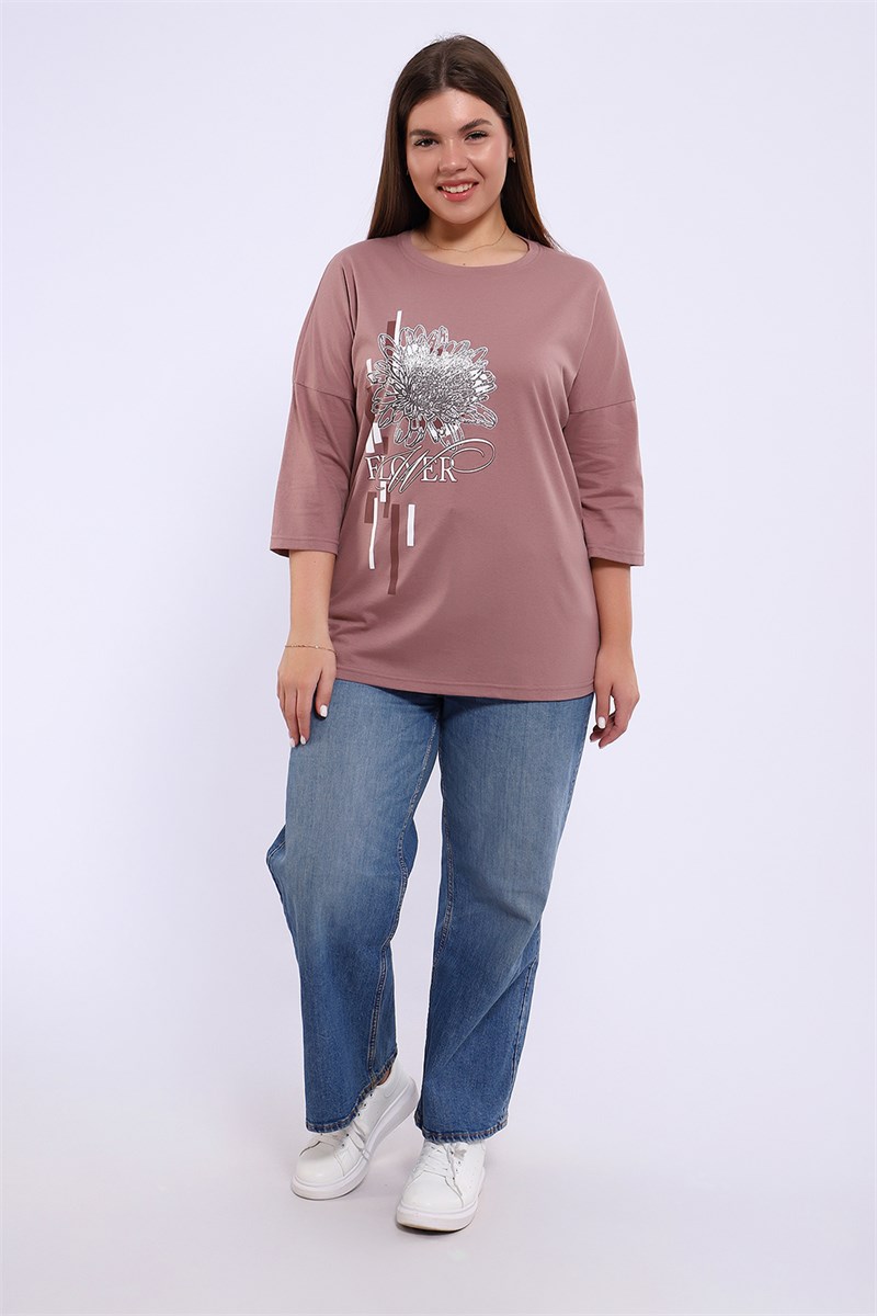 Туника из натурального хлопка прекрасный вариант для повседневного образа. Будет комфортна и как базовый вариант к классическим брючкам, так и к стилю спортшик. Принт в виде большого цветка пиона с использованием глиттера и техники объёмной печати украшает модель, придавая ей изысканный вид. Обработка деталей вкруговую с закрепкой, рукав длиной 3/4, горловина втачная из основной ткани. Большие размеры!
