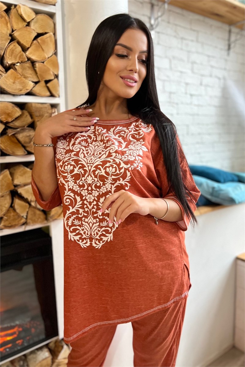 Туника прямая, свободная, с округлой горловиной, с асимметричным низом. Рукав длиной 3/4. Горловина обработана бейкой из основного полотна.