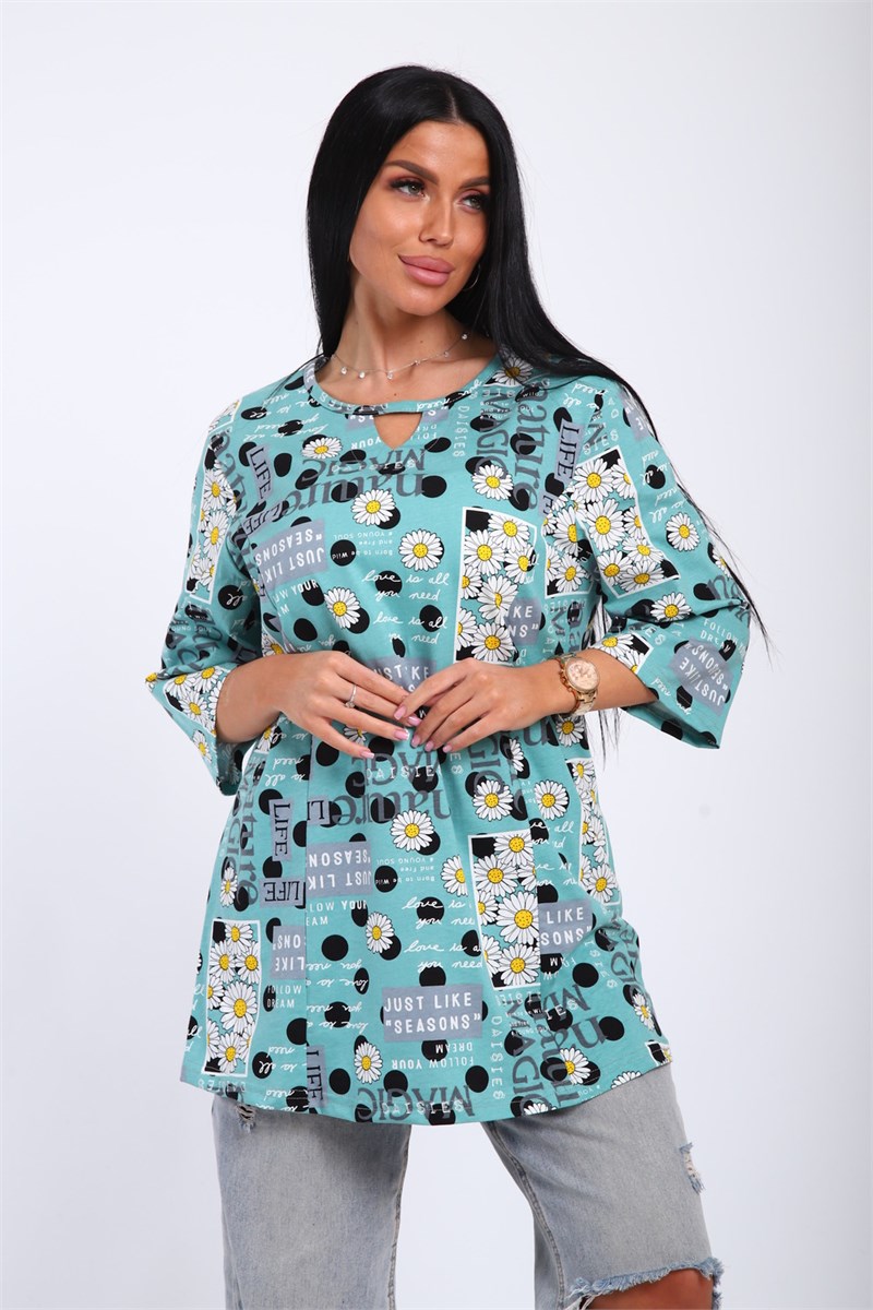 Туника женская с рукавом 3/4. Данная модель выполнена из трикотажного полотна кулирка (хлопок 100%). Горловина обработана обтачкой. Отличная модель для отдыха и прогулок.