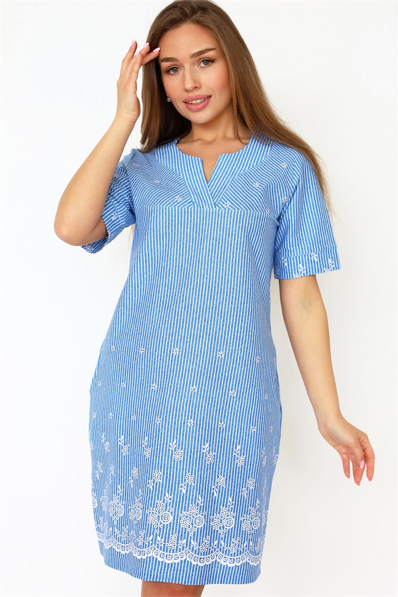 Женская туника приталенная выполнена из 100% хлопка. Удобный рукав 3/4 и удлиненный силуэт позволит его обладательнице создавать яркие образы. Стильный принт подчеркнет индивидуальность и придаст неповторимый шарм. Округлая горловина украшена стильным акцентом - вырезом на мысик. Стильная туника из легкого и дышащего трикотажа в полоску, подходит женщинам любого возраста и прекрасно садится на любую фигуру.