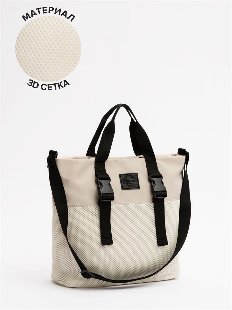 Современный тоут габарита М из объёмной сетки и твила — универсальный аксессуар для активной жизни. Короткие ручки и длинный регулируемый ремень из широкой стропы предлагают варианты ношения под любой сценарий. Задний карман на кнопке добавляет практичности, а продуманный размер вмещает ноутбук, документы А4 и даже спортивную форму. Двусторонний дизайн с фастексами создаёт спортивный вайб, а лаконичная обратная сторона подойдёт для сдержанных образов. Лёгкий, стильный и неуязвимый для дождя — идеальный компаньон весны и лета.