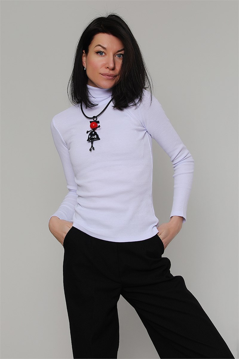 Женская водолазка выполнена из ткани кашкорсе. Подходит для повседневной носки.