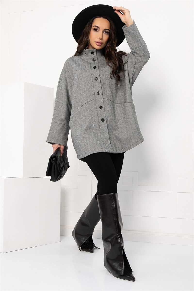 Пальто-жакет свободного кроя — это стильный и универсальный элемент гардероба, который поможет создать множество образов. Воротник-стойка плавно переходит в планку на пуговицах, что придаёт изделию элегантный и современный вид. Цельнокроеные рукава и манжеты, которые можно отгибать, позволяют экспериментировать с образом. Удобные карманы добавляют функциональности, делая пальто практичным выбором для повседневной носки. Это пальто-жакет станет незаменимым элементом вашего гардероба, сочетая в себе комфорт и стиль.